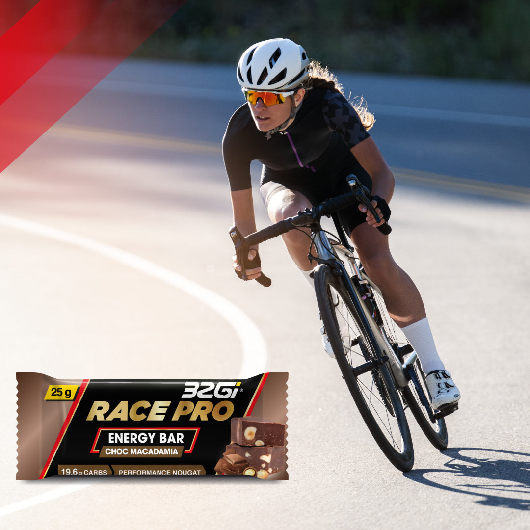 Performance-driven, 32Gi®’s Race Pro Nougat Energy Bar is nutritionally engineered to provide sustainable energy with a terrifically tasty boutique nougat taste.